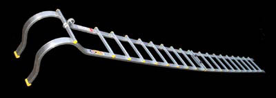 Le crochet est dans le même profil que l'échelle sans soudure. Les barreaux sont boulonnés aux montants de l'échelle (et non rivés )