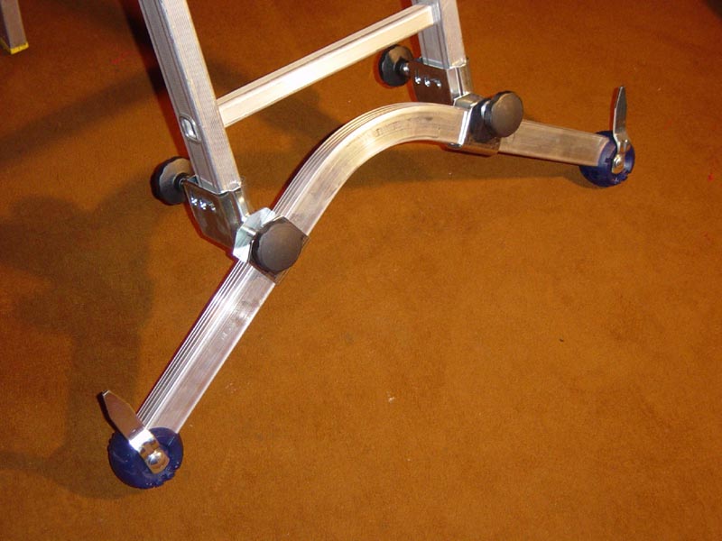 Pour une meilleure adherence sur sol accidente ou meuble, le stabilisateur universel est equipe de pointes acier pivotantes reglables antiderapantes de 70 mm de longueur |