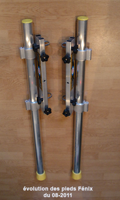 Adaptation possible sur les échelles aluminium avec des barreaux de section de 30 x30 maxi et pour des entraxes de 250 mm, 280 mm, 300 mm entre barreaux. Rattrapage de niveau Fénix . |