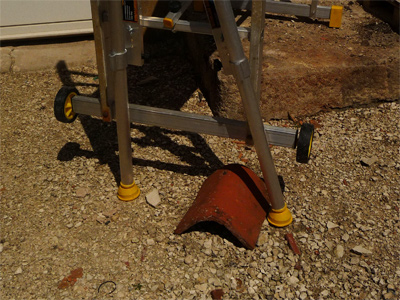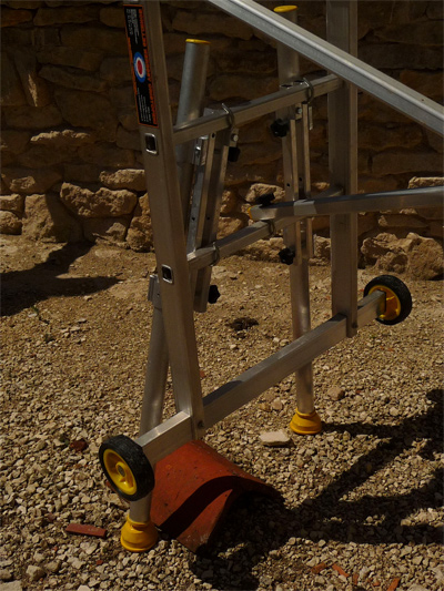 sur un petit échafaudage aluminium ancien modèle de marque