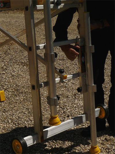 les pieds de rattrapage de pente Fénix sont facile a mettre en place sur les échelles et les échafaudages équipés de barreaux |
